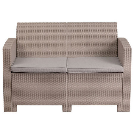 Flash Furniture DAD-SF2-2-GG, Outdoor Faux Rattan Patio Loveseat w/ Cushions, Light Gray