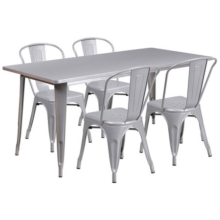Flash Furniture ET-CT005-4-30-SIL-GG, 63" x 31 1/2" Top Indoor / Outdoor Metal Dining Set w/ 4 Chairs, Silver