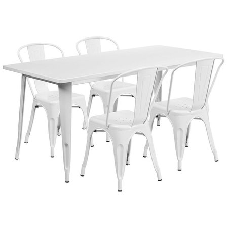 Flash Furniture ET-CT005-4-30-WH-GG, 63" x 31 1/2" Top Indoor / Outdoor Metal Dining Set w/ 4 Chairs, White