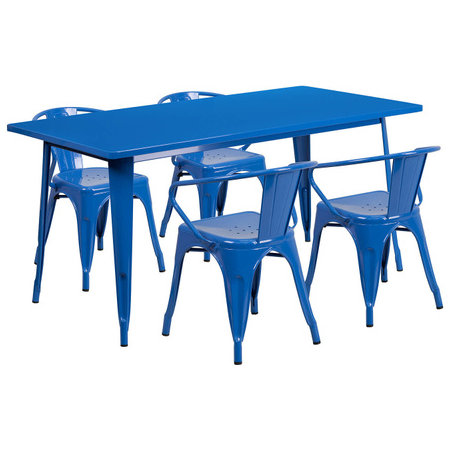 Flash Furniture ET-CT005-4-70-BL-GG, 63" x 31 1/2" Top Indoor / Outdoor Metal Dining Set w/ 4 Arm Chairs, Blue