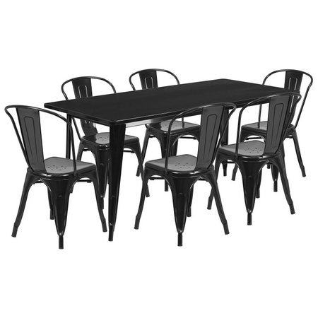 Flash Furniture ET-CT005-6-30-BK-GG, 63" x 31 1/2" Top Indoor / Outdoor Metal Dining Set w/ 6 Chairs, Black