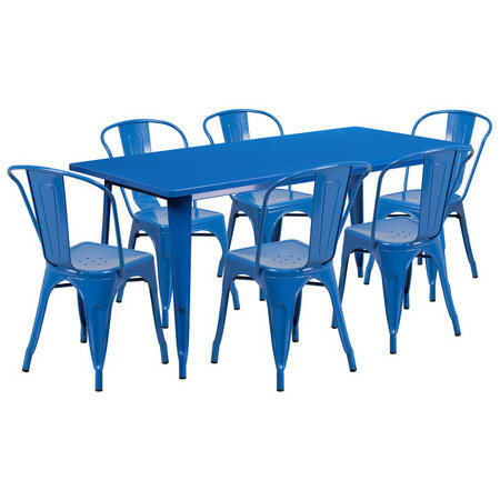 Flash Furniture ET-CT005-6-30-BL-GG, 63" x 31 1/2" Top Indoor / Outdoor Metal Dining Set w/ 6 Chairs, Blue