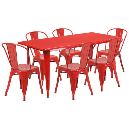 Flash Furniture ET-CT005-6-30-RED-GG, 63" x 31 1/2" Top Indoor / Outdoor Metal Dining Set w/ 6 Chairs, Red