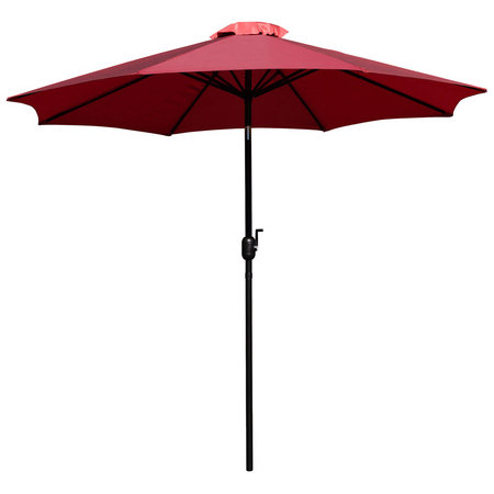Whether you need to provide shade to friends and family on your deck or poolside or to patrons dining outdoors at your cafe, restaurant or eatery this 9 foot patio umbrella is just what you need. The polyester round top blocks sunlight and UV rays and can make your environment feel up to 10° cooler. 8 solid steel ribs give this outdoor table umbrella a uniform shape that will protect your electronic devices and pets from overheating and outdoor furniture from fading due to sun exposure. A ventilated top allows heat to escape and prevents the wind from turning your umbrella into a large kite.