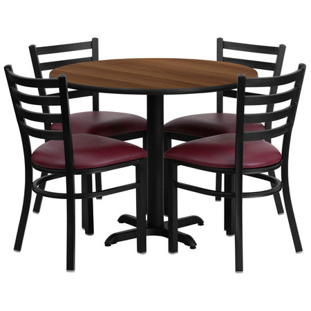 Flash Furniture HDBF1008-GG, 36" Round Indoor Melamine Dining Table Set w/ 4 Chairs, Walnut Laminate Finish