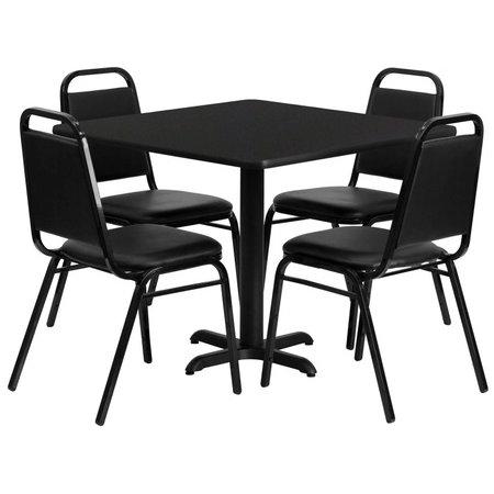 Flash Furniture HDBF1009-GG, 36" x 36" Square Indoor Melamine Dining Table Set w/ 4 Chairs, Black Laminate Finish