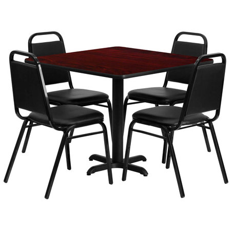 Flash Furniture HDBF1010-GG, 36" x 36" Square Indoor Melamine Dining Table Set w/ 4 Chairs, Mahogany Laminate Finish