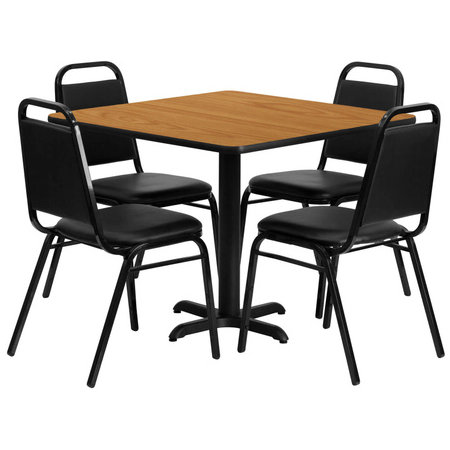 Flash Furniture HDBF1011-GG, 36" x 36" Square Indoor Melamine Dining Table Set w/ 4 Chairs, Natural Wood Laminate Finish