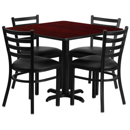 Flash Furniture HDBF1014-GG, 36" x 36" Square Indoor Melamine Dining Table Set w/ 4 Chairs, Mahogany Laminate Finish
