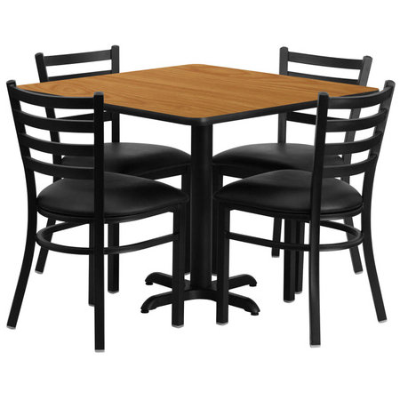 Flash Furniture HDBF1015-GG, 36" x 36" Square Indoor Melamine Dining Table Set w/ 4 Chairs, Natural Wood Laminate Finish