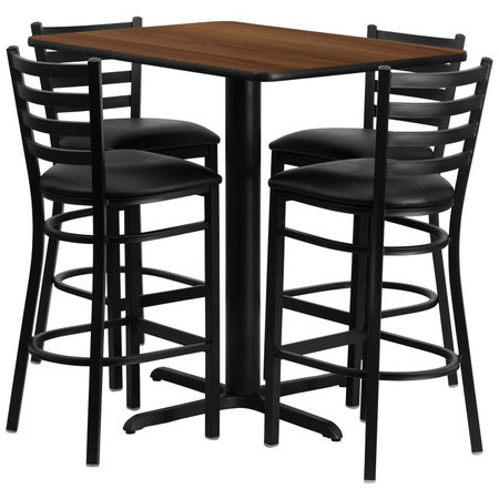 Flash Furniture HDBF1020-GG, 42" x 24" Rectangular Indoor Melamine Bar Height Table Set w/ 4 Barstools, Walnut Laminate Finish