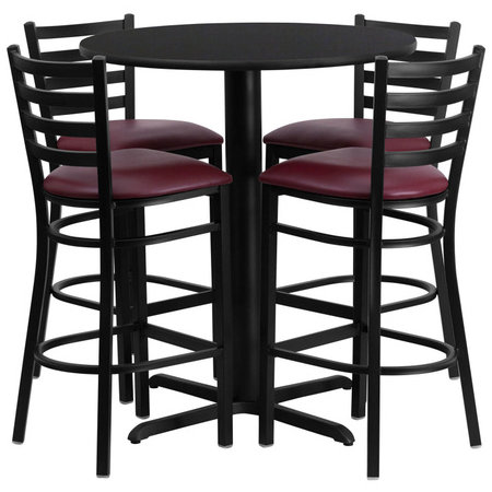 Flash Furniture HDBF1025-GG, 30" Round Indoor Melamine Bar Height Table Set w/ 4 Barstools, Black Laminate Finish