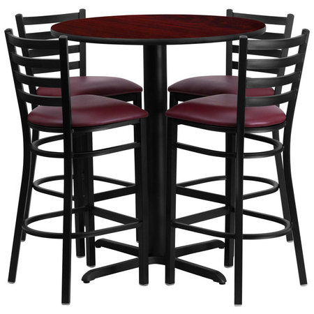 Flash Furniture HDBF1026-GG, 30" Round Indoor Melamine Bar Height Table Set w/ 4 Barstools, Mahogany Laminate Finish