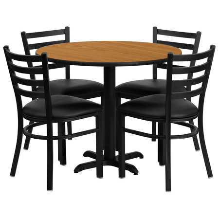 Flash Furniture HDBF1031-GG, 36" Round Indoor Melamine Dining Table Set w/ 4 Chairs, Natural Wood Laminate Finish