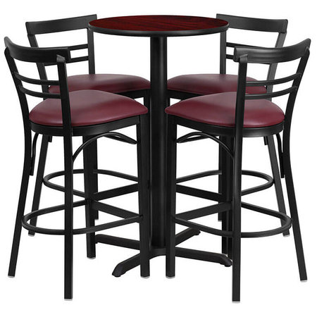 Flash Furniture HDBF1038-GG, 24" Round Indoor Melamine Bar Height Table Set w/ 4 Barstools, Mahogany Laminate Finish