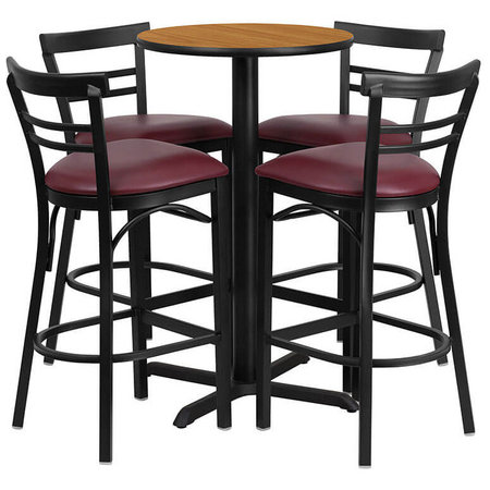 Flash Furniture HDBF1039-GG, 24" Round Indoor Melamine Bar Height Table Set w/ 4 Barstools, Natural Wood Laminate Finish
