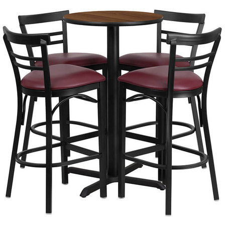 Flash Furniture HDBF1040-GG, 24" Round Indoor Melamine Bar Height Table Set w/ 4 Barstools, Walnut Laminate Finish