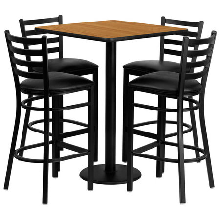 Flash Furniture MD-0012-GG, 30" x 30" Square Indoor Melamine Bar Height Table Set w/ 4 Barstools, Natural Wood Laminate Finish