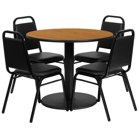Flash Furniture RSRB1003-GG, 36" Round Indoor Melamine Dining Table Set w/ 4 Chairs, Natural Wood Laminate Finish
