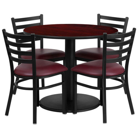 Flash Furniture RSRB1006-GG, 36" Round Indoor Melamine Dining Table Set w/ 4 Chairs, Mahogany Laminate Finish