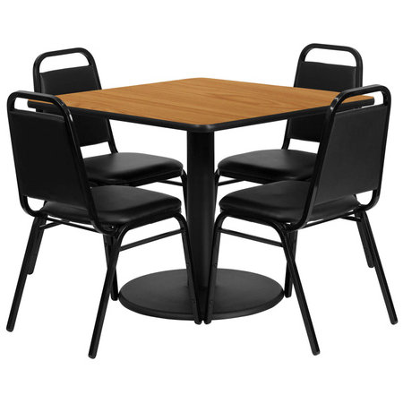 Flash Furniture RSRB1011-GG, 36" x 36" Square Indoor Melamine Dining Table Set w/ 4 Chairs, Natural Wood Laminate Finish
