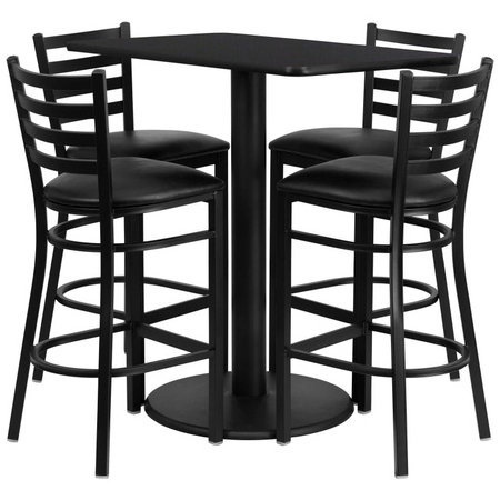Flash Furniture RSRB1017-GG, 42" x 24" Rectangular Indoor Melamine Bar Height Table Set w/ 4 Barstools, Black Laminate Finish