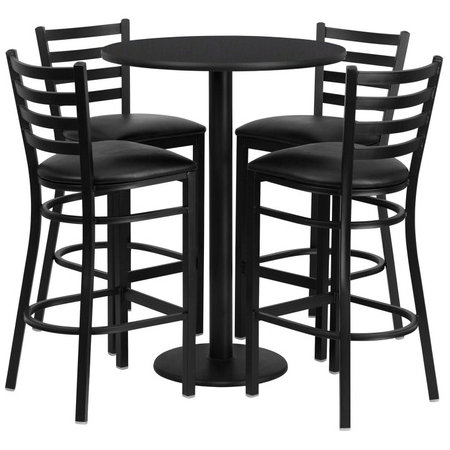 Flash Furniture RSRB1021-GG, 30" Round Indoor Melamine Bar Height Table Set w/ 4 Barstools, Black Laminate Finish