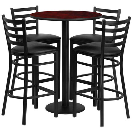 Flash Furniture RSRB1022-GG, 30" Round Indoor Melamine Bar Height Table Set w/ 4 Barstools, Mahogany Laminate Finish