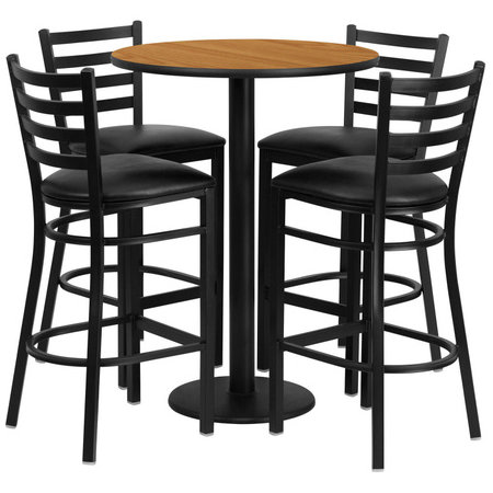Flash Furniture RSRB1023-GG, 30" Round Indoor Melamine Bar Height Table Set w/ 4 Barstools, Natural Wood Laminate Finish
