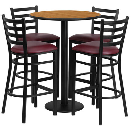 Flash Furniture RSRB1027-GG, 30" Round Indoor Melamine Bar Height Table Set w/ 4 Barstools, Natural Wood Laminate Finish