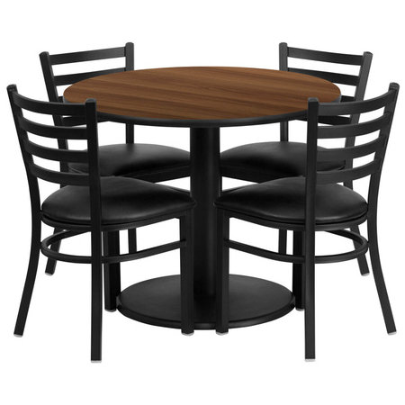 Flash Furniture RSRB1032-GG, 36" Round Indoor Melamine Dining Table Set w/ 4 Chairs, Walnut Laminate Finish