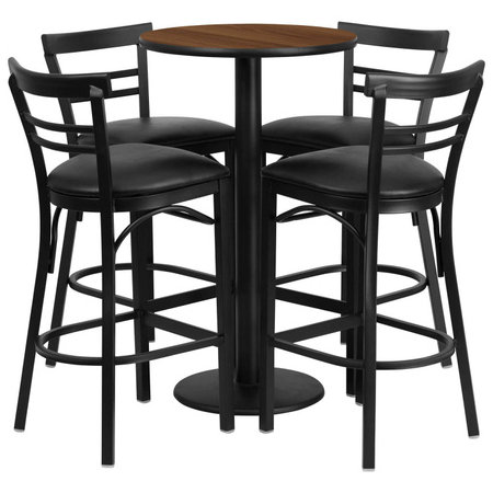 Flash Furniture RSRB1036-GG, 24" Round Indoor Melamine Bar Height Table Set w/ 4 Barstools, Walnut Laminate Finish