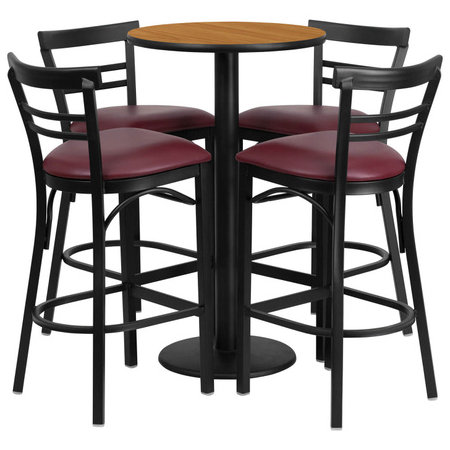 Flash Furniture RSRB1039-GG, 24" Round Indoor Melamine Bar Height Table Set w/ 4 Barstools, Natural Wood Laminate Finish