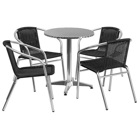 Flash Furniture TLH-ALUM-24RD-020BKCHR4-GG, 23 1/2" Round Indoor / Outdoor Patio Dining Set w/ 4 Chairs, Silver