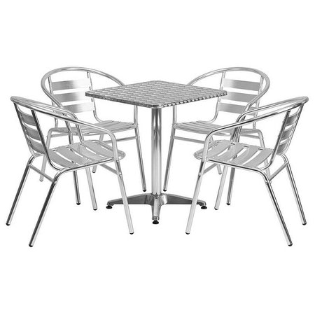 Flash Furniture TLH-ALUM-24SQ-017BCHR4-GG, 23 1/2" Square Indoor / Outdoor Patio Dining Set w/ 4 Chairs, Silver