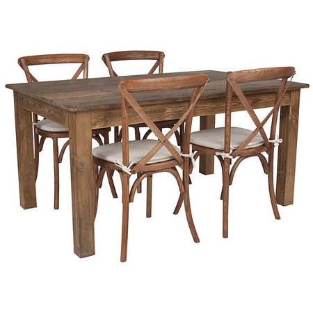Flash Furniture XA-FARM-18-GG, 60" x 38" Wood Farm Table Dining Set w/ 4 Chairs, Antique Rustic Pine