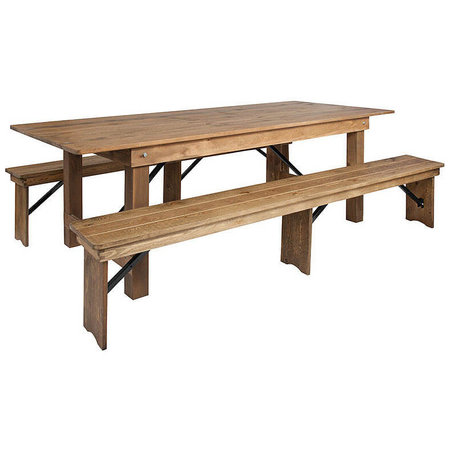 Flash Furniture XA-FARM-4-GG, 96" x 40" Hercules Wood Folding Farm Table Dining Set w/ 2 Benches, Antique Rustic Pine