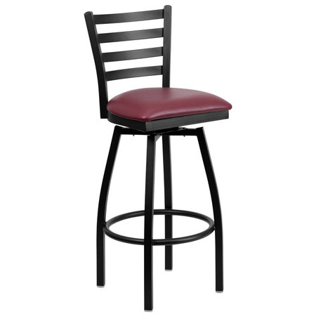 Flash Furniture XU-6F8B-LADSWVL-BURV-GG, Indoor Steel Ladder Back Restaurant Swivel Barstool w/ Burgundy Vinyl Seat