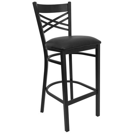 Flash Furniture XU-6F8BXBK-BAR-BLKV-GG, Indoor Steel Cross Back Restaurant Barstool w/ Black Vinyl Seat