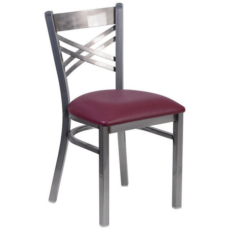 Flash Furniture XU-6FOB-CLR-BURV-GG, Indoor Clear Coat Steel Cross Back Restaurant Chair w/ Burgundy Vinyl Seat