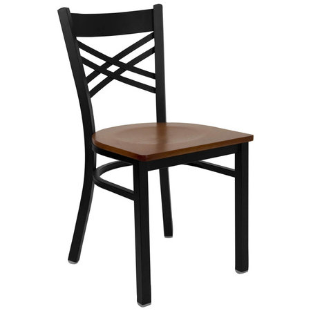 Flash Furniture XU-6FOBXBK-CHYW-GG, Indoor Steel Cross Back Restaurant Chair w/ Cherry Wood Seat