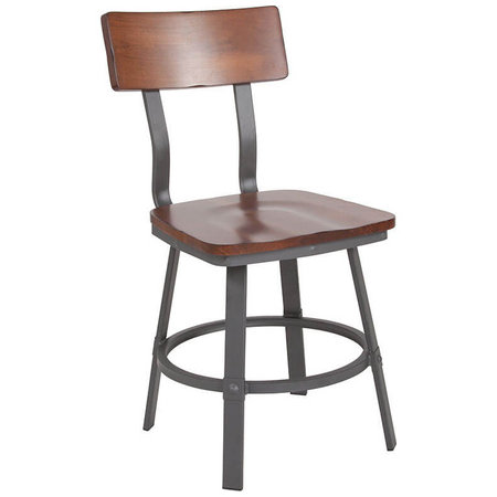 Flash Furniture XU-DG-60582-GG, Indoor Steel Restaurant Chair w/ Rustic Walnut Wood Seat
