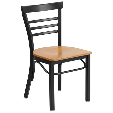 Flash Furniture XU-DG6Q6B1LAD-NATW-GG, Indoor Steel Ladder Back Restaurant Chair w/ Natural Wood Seat