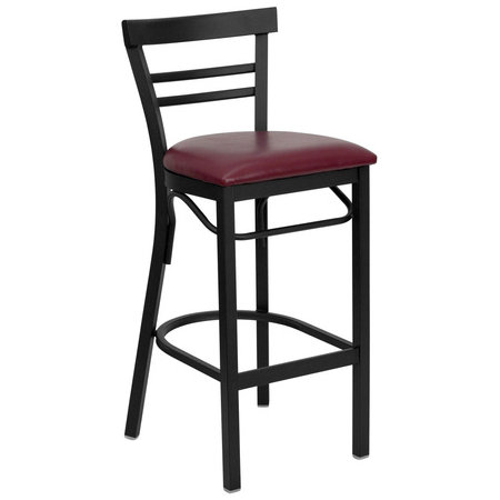 Flash Furniture XU-DG6R9BLAD-BAR-BURV-GG, Indoor Steel Ladder Back Restaurant Barstool w/ Burgundy Vinyl Seat