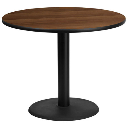 Flash Furniture XU-RD-36-WALTB-TR24-GG, 36" Round Indoor Melamine Dining Table w/ Walnut Laminate Finish
