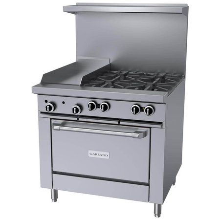 Garland G36-4G12C, 4 Burner Gas Restaurant Range w/ 12" Manual Griddle, 1 Convection Oven, 188,000 BTU