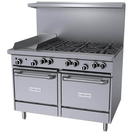 Garland G48-6G12LL, 6 Burner Gas Restaurant Range w/ 12" Manual Griddle, 2 Space Saver Ovens, 280,000 BTU