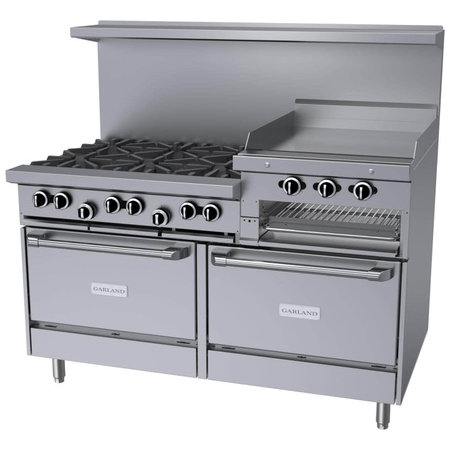 Garland G60-6R24RR, 6 Burner Gas Restaurant Range w/ 24" Manual Griddle & Broiler, 2 Standard Ovens, 307,000 BTU