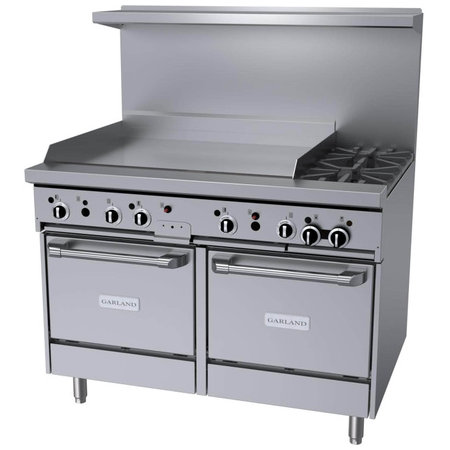 Garland GF48-2G36LL, 2 Burner Gas Restaurant Range w/ 36" Thermostatic Griddle, 2 Space Saver Ovens, 170,000 BTU