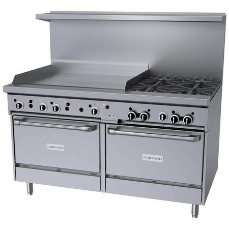 Garland GF60-4G36RR, 4 Burner Gas Restaurant Range w/ 36" Thermostatic Griddle, 2 Standard Ovens, 234,000 BTU